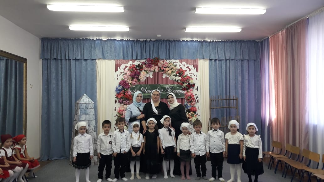 и с целью поддержания традиции бережного отношения к женщине, познакомить дошкольников с историей чеченского народа в ДОУ с детьми подготовительных группах 16.09.2019 г. были проведены мероприятия, посвящённые Дню Чеченской Женщины. Праздник основан в память о 46 чеченских девушках, погибших во время Кавказской войны. «День чеченской женщины – это дань уважения чеченским женщинам, которые во все времена на своих плечах выносили тяготы и лишения, связанные с трагическими событиями истории народа в прошлых столетиях, а также в годы двух военных компаний» Р.А.Кадыров. В рамках проведения ежегодного праздника «День чеченской женщины» запланировано и проведено праздничное мероприятие. В мероприятии приняли участие воспитанники и коллектив ДОУ, дети рассказали стихи, спели песни.
